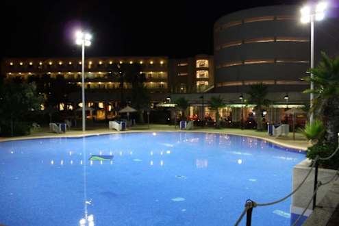 Einer von drei Pools bei Nacht