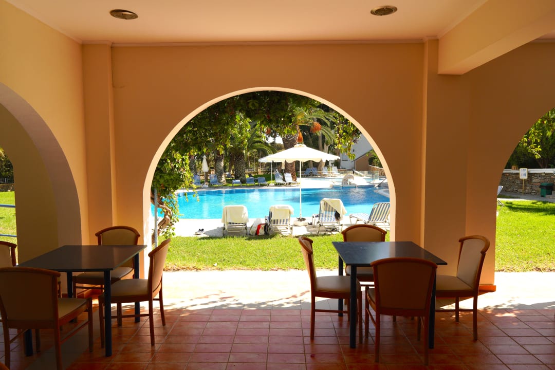 Ausblick vom offenen Restaurant zum Poolbereich der nur einige Meter entfernt liegt...