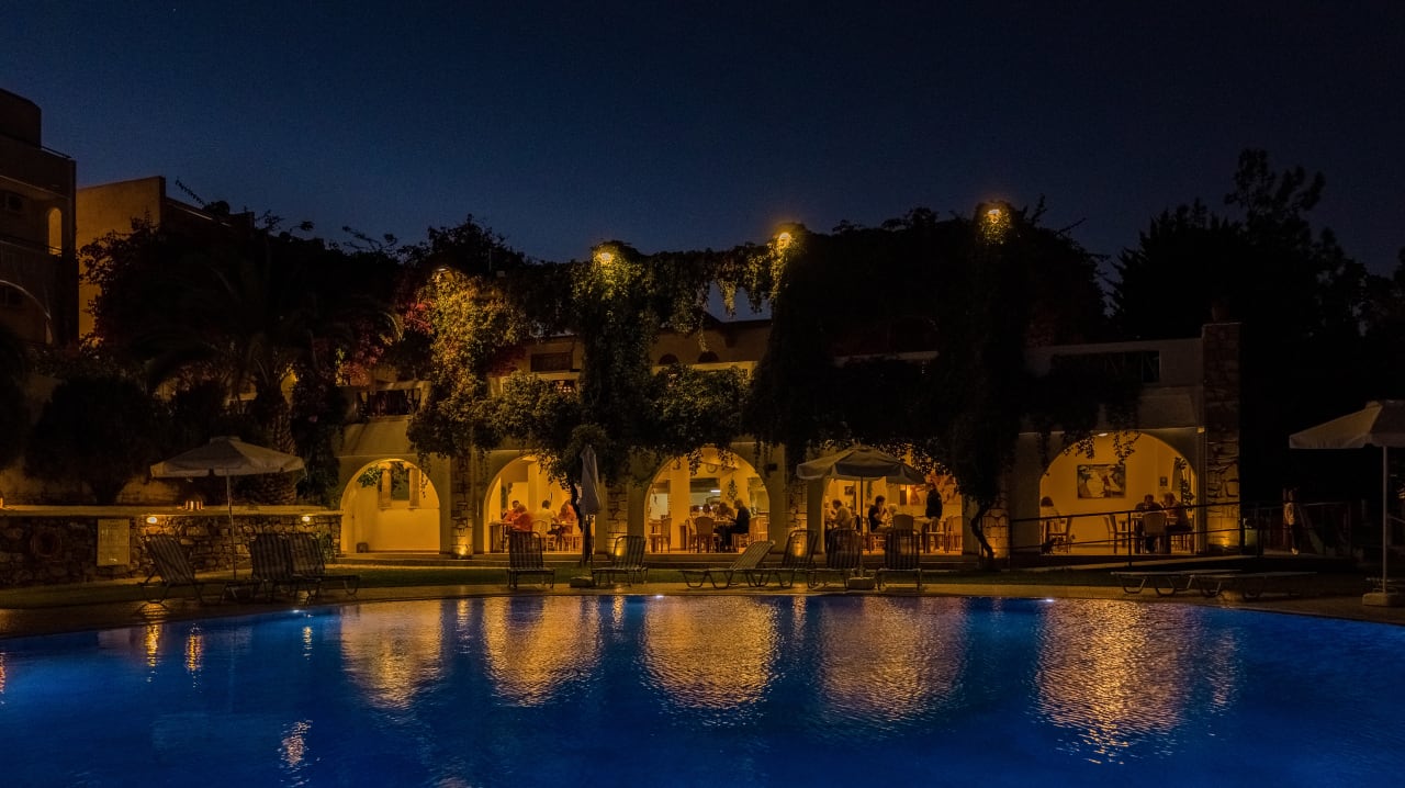Ausblick auf das Restaurant und der Terrasse am Abend