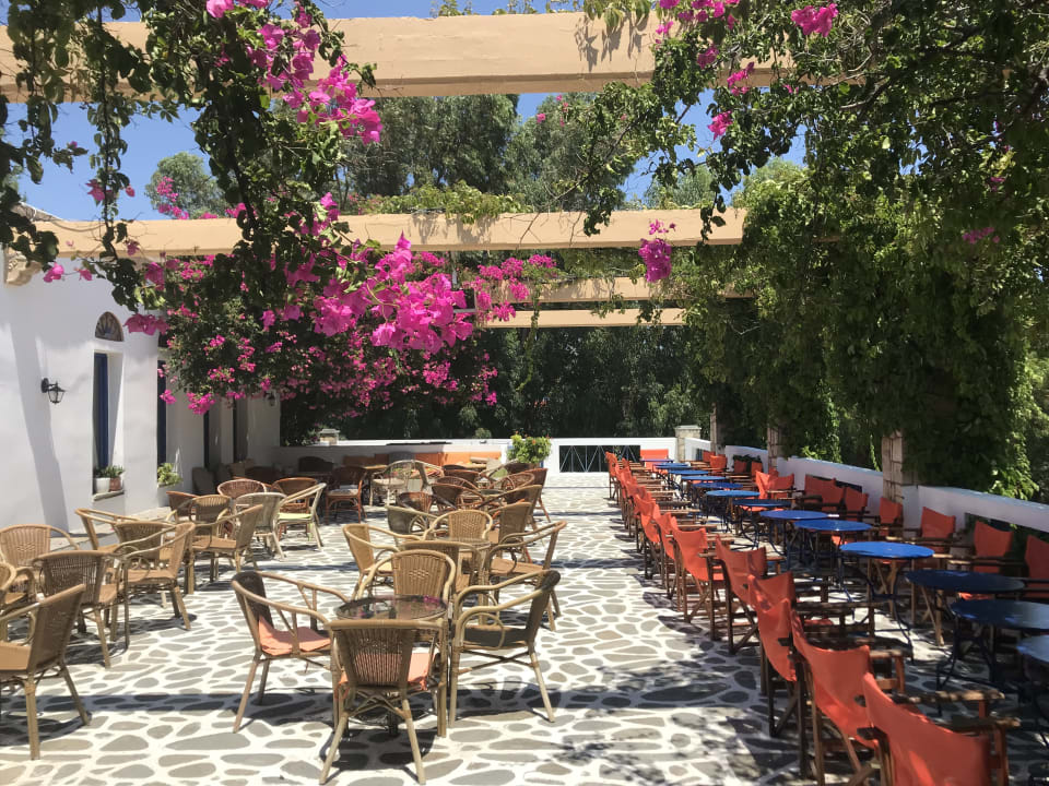 Sehr schöner Aussenbereich. Nach dem Frühstück gab es leckeren Frappé von der Hotelchefin!