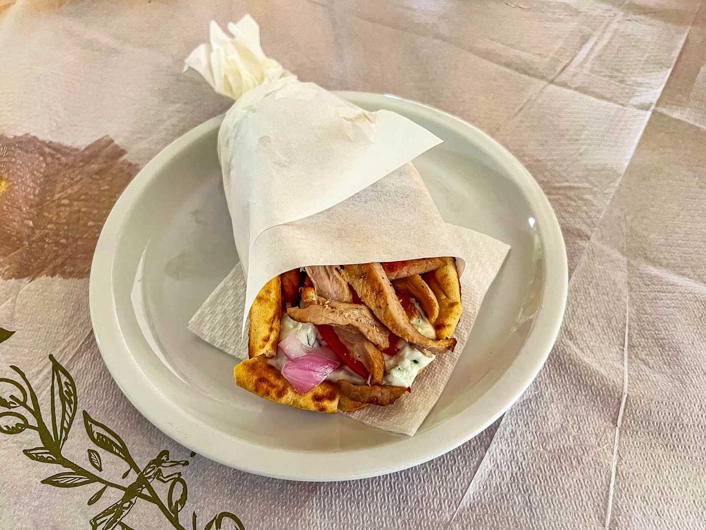 Pita Gyros in der Snack Bar (Restaurant) zu haben von 13 Uhr bis 16 Uhr