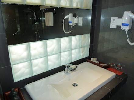 Der Spiegel ist viel zu klein und die Lichter darüber sind so ungündtig angebracht, dass man sich als Mann nicht ordentlich rasieren kann - man sieht nicht was man genau macht...
