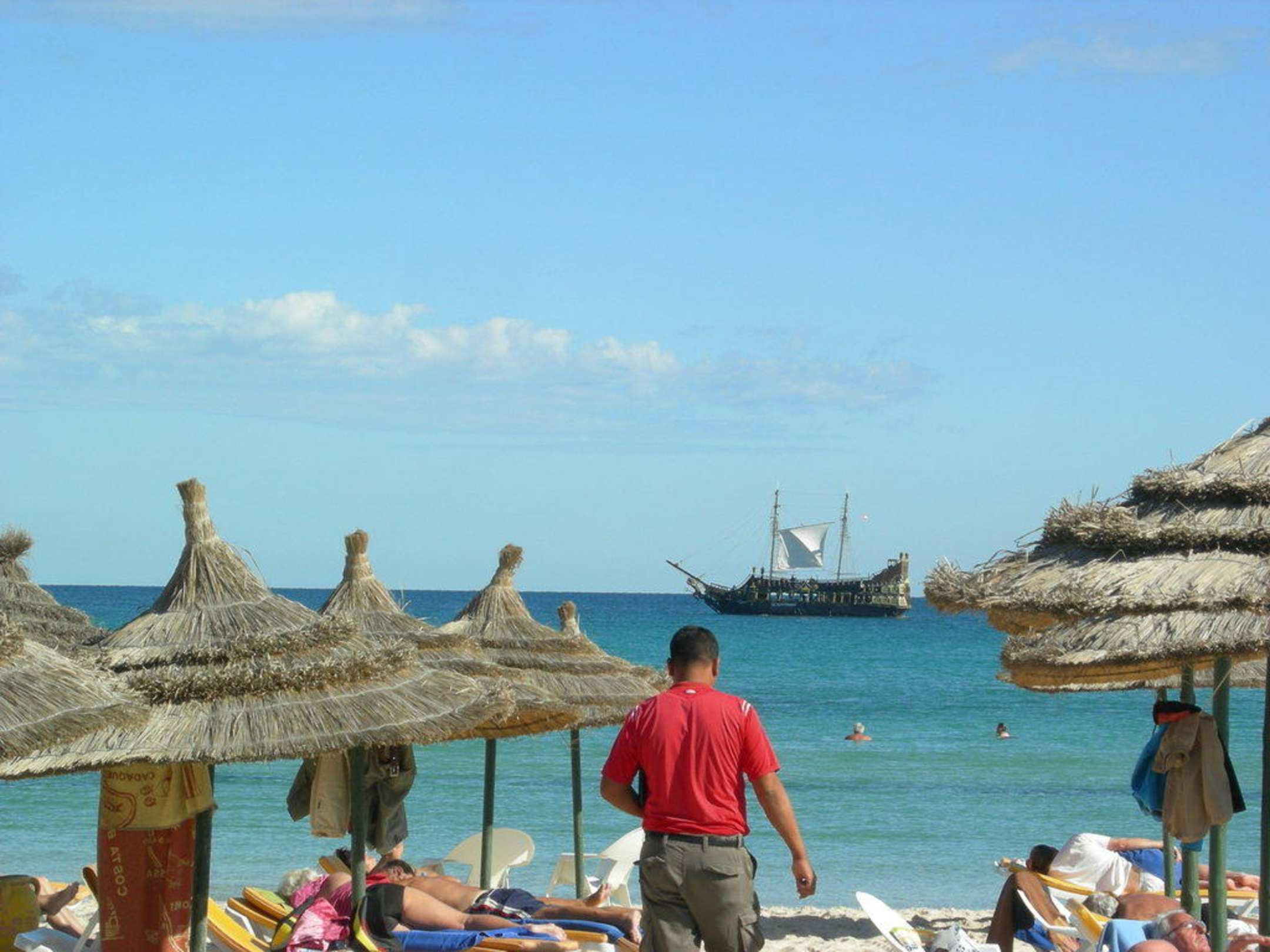Piratenschiff vom Strand aus gesehen