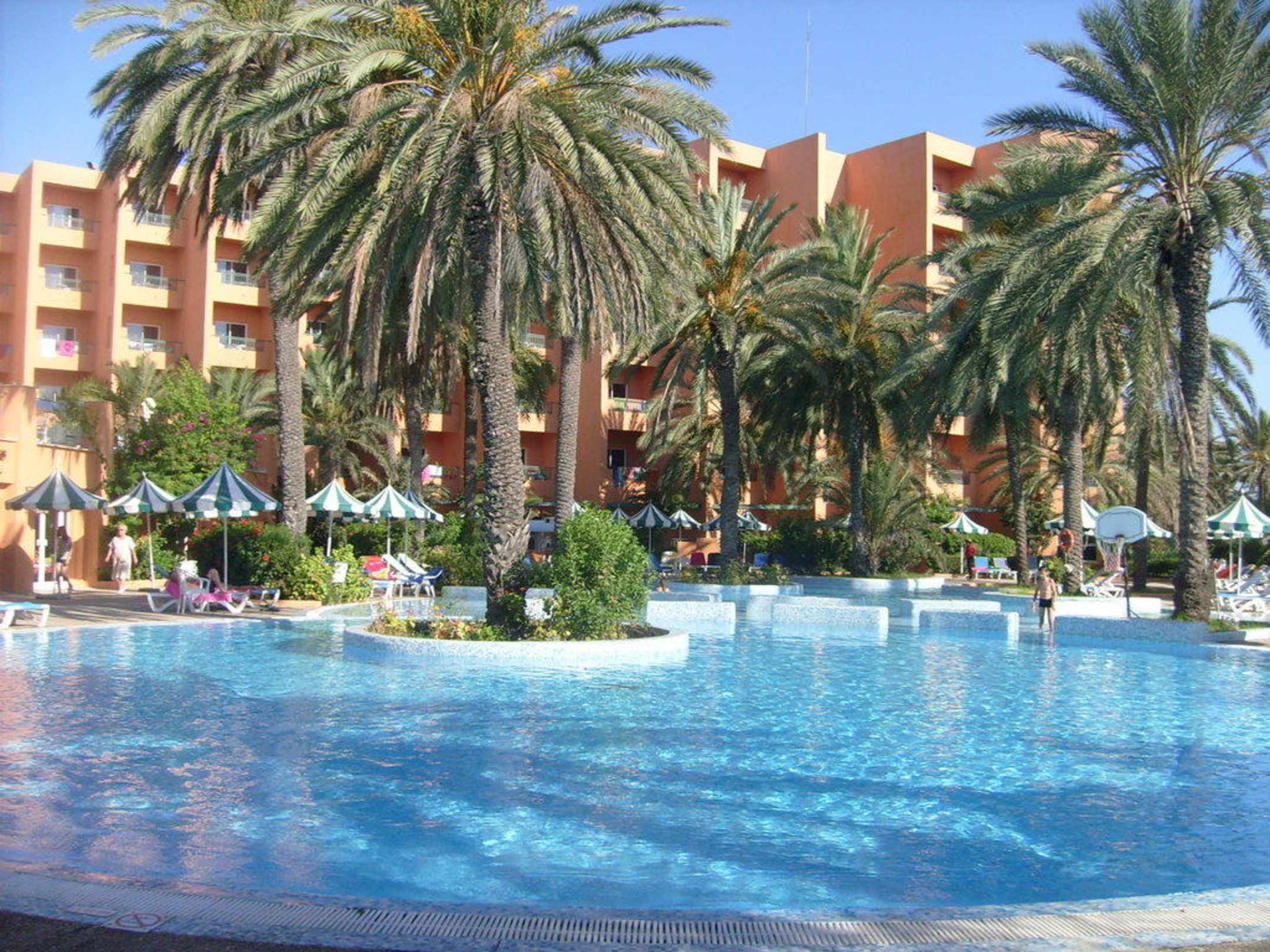 Großer Pool mit Hotel im Hintergrund