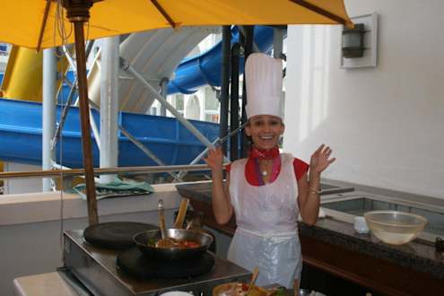 Kleine Sonja mit grosser Mütze Jeden Mittwoch tunesischer Kochkurs bei Sonja, Chef - Animateurin. Es gab ´"Chakchouka ", Ratatouille und Brik, eine tunesische Spezialität. ....und es war sehr lecker !