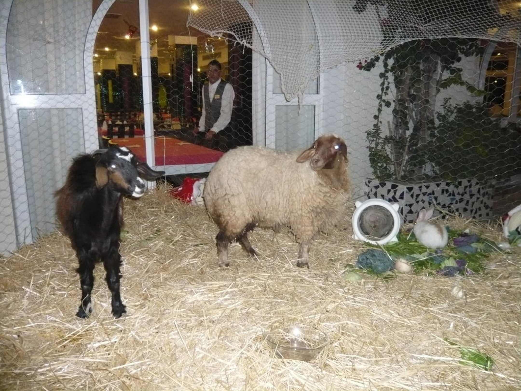 Weihnachtskrippe mit echten Tieren