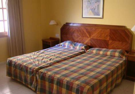 Rechts vom Bett befindet sich ein Einbauschrank, am Fußende ein Frisiertisch mit Spiegel und ein Sessel! Das Fenster ist mit Blick zum schönen Innenhof mit Palmen!