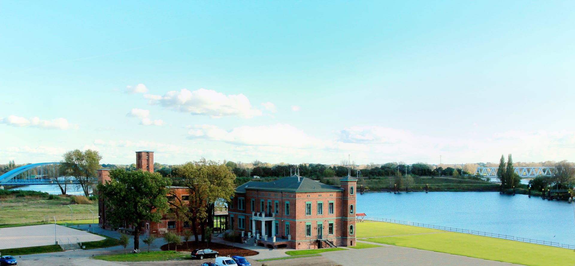 Außenansicht mit Sicht auf die Elbe