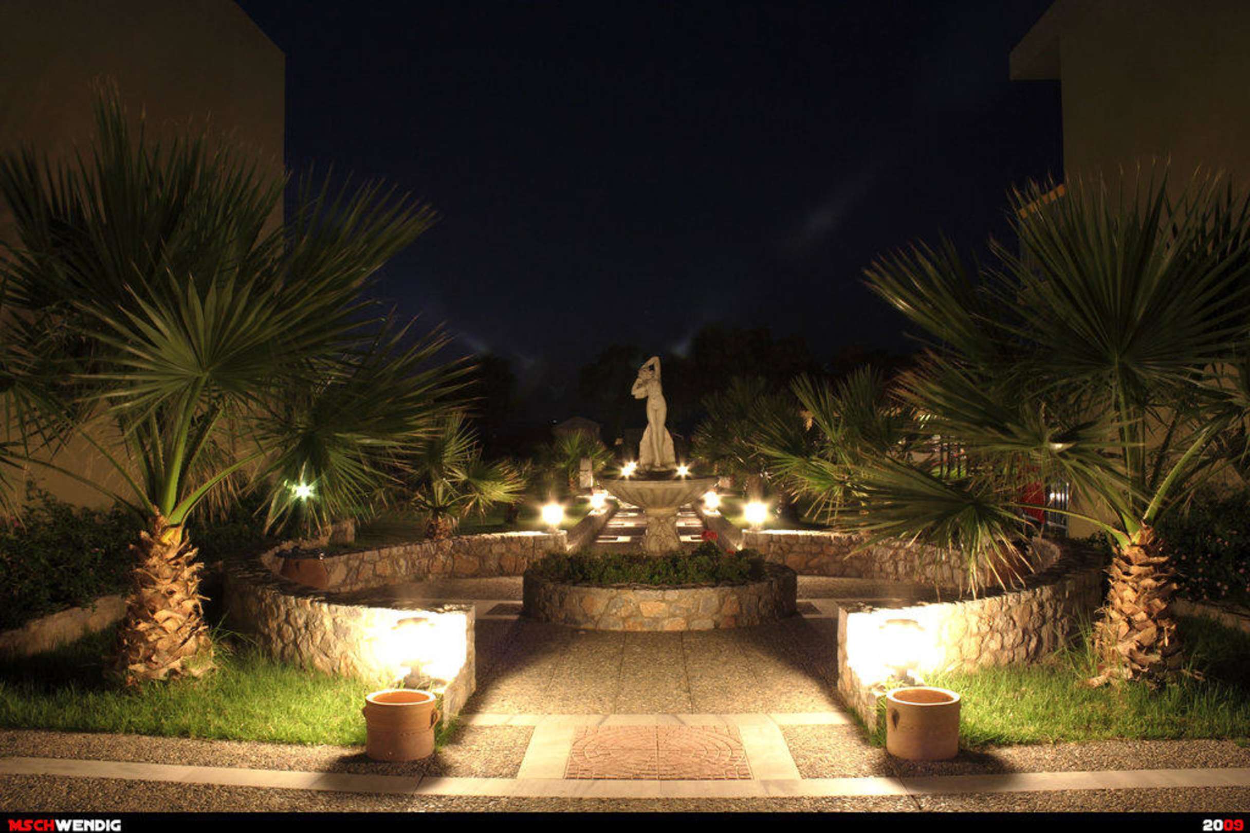Das Wahrzeichen des Eliros bei Nacht