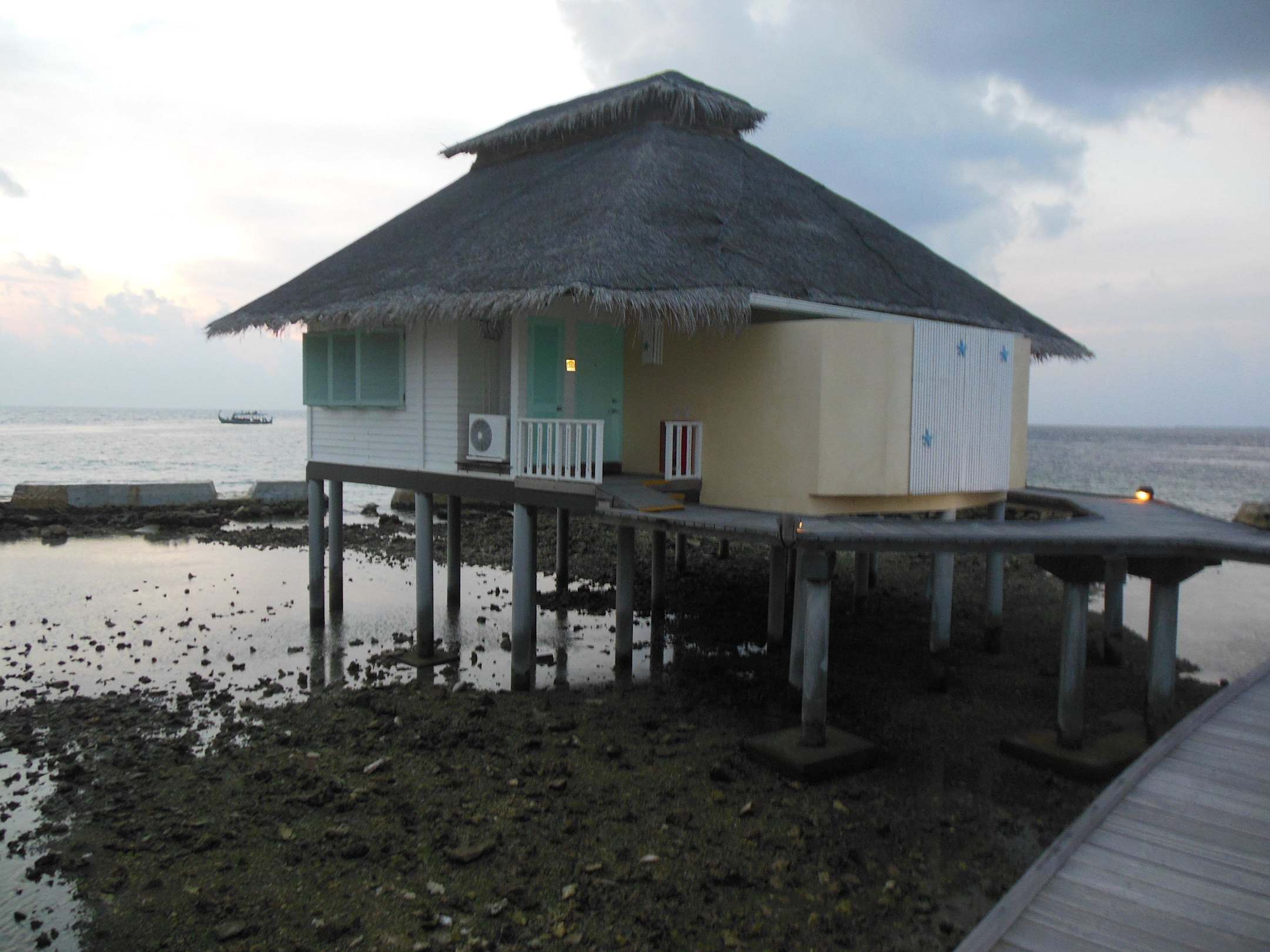 Äußerster Wasserbungalow bei Ebbe