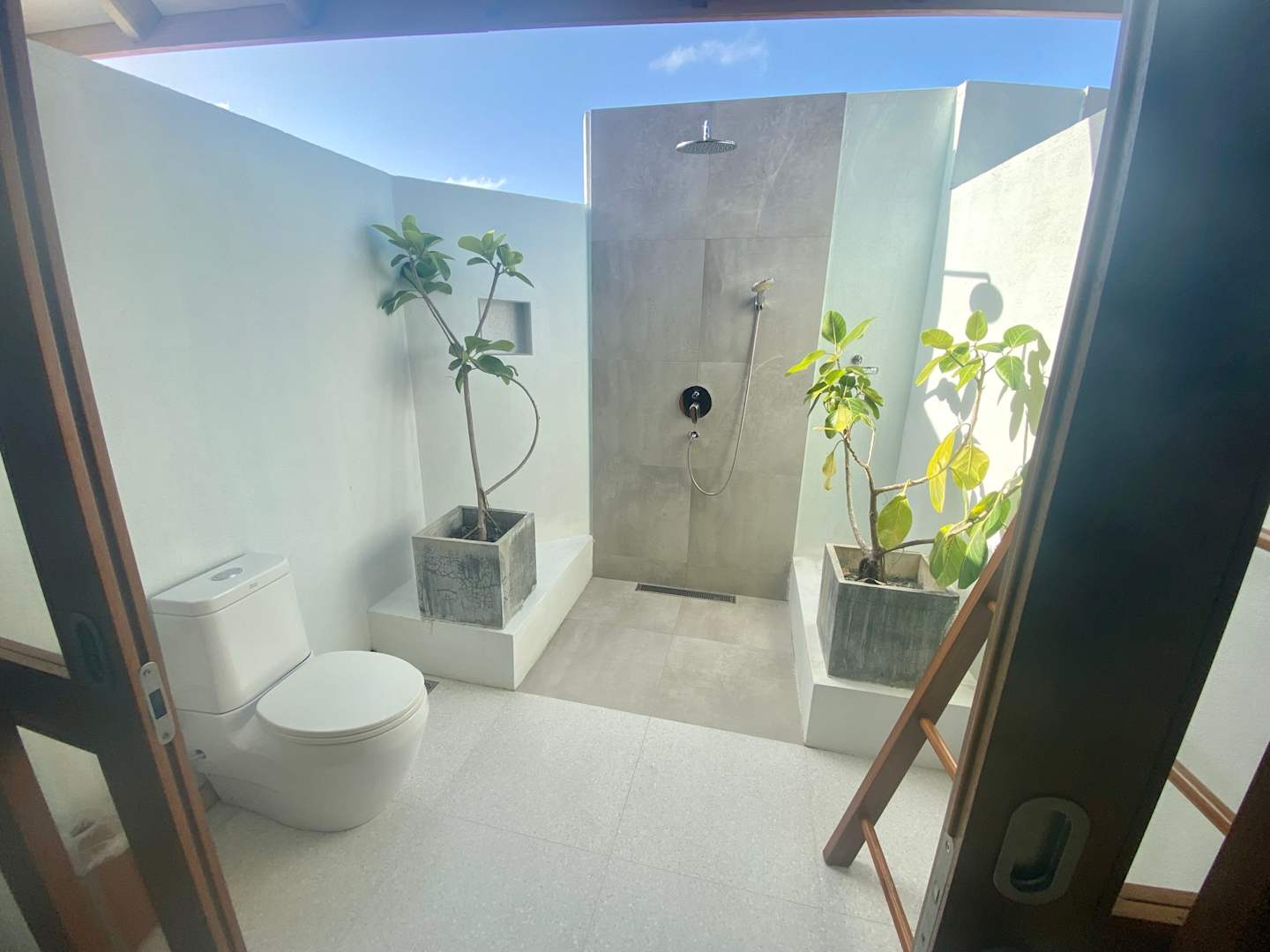 ZimmerDusche und WC im freiem vom Bad aus gesehen