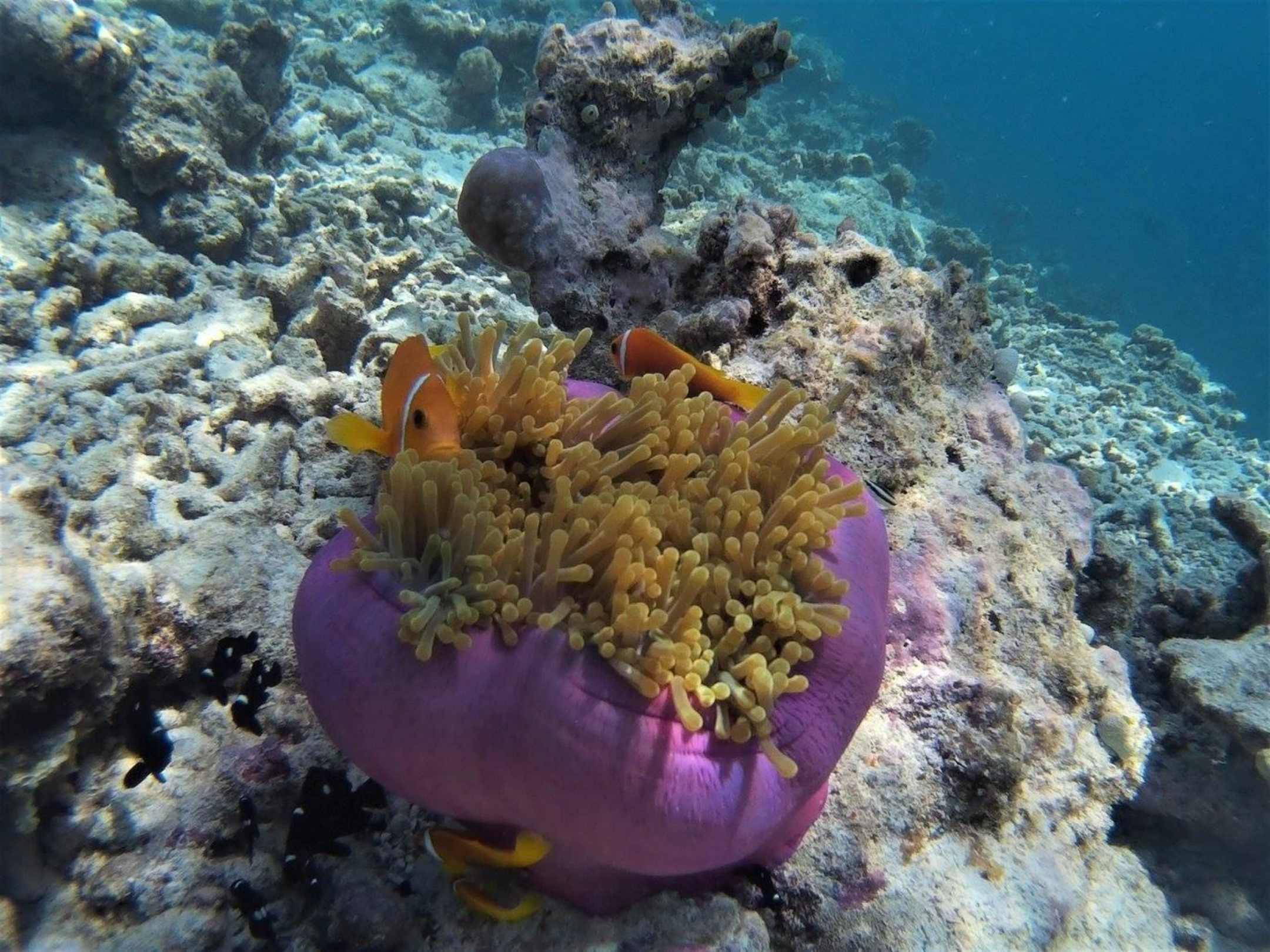 Anemone mit Fischen umgeben vom Nichts
