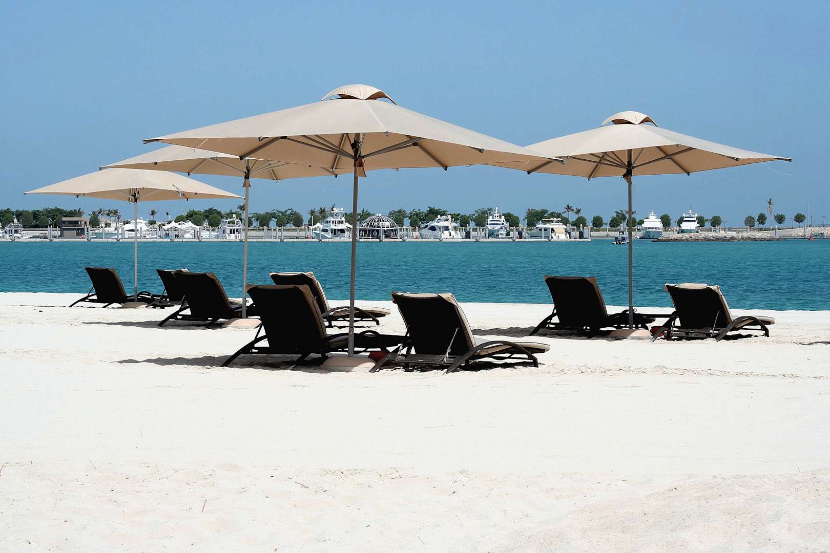 Im Hintergrund der Hoteleigene Yachthafen