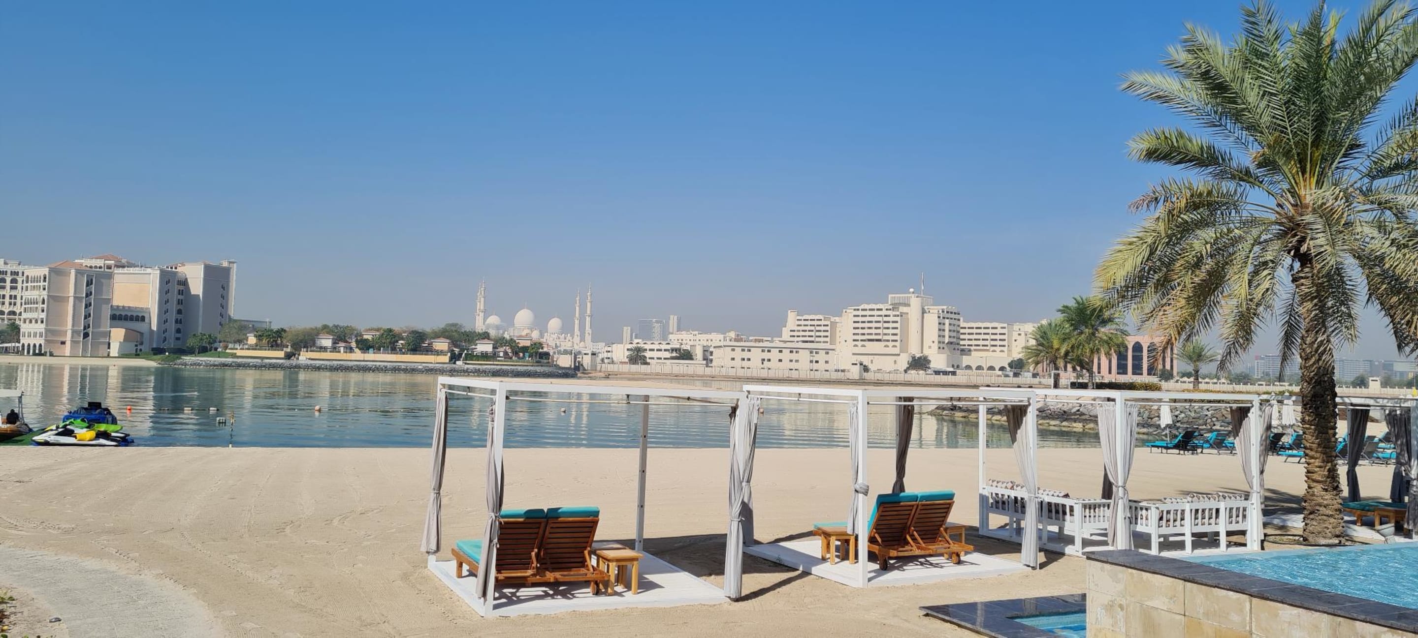 Privatstrand mit Cabanas und Pool vorne rechts