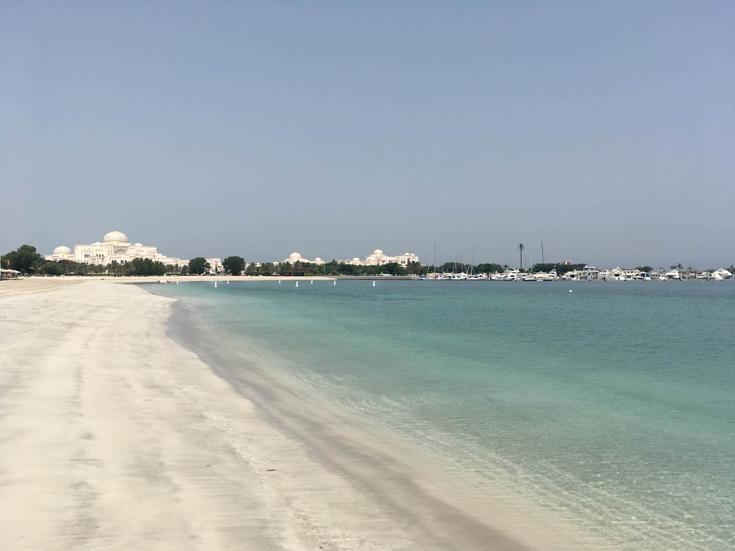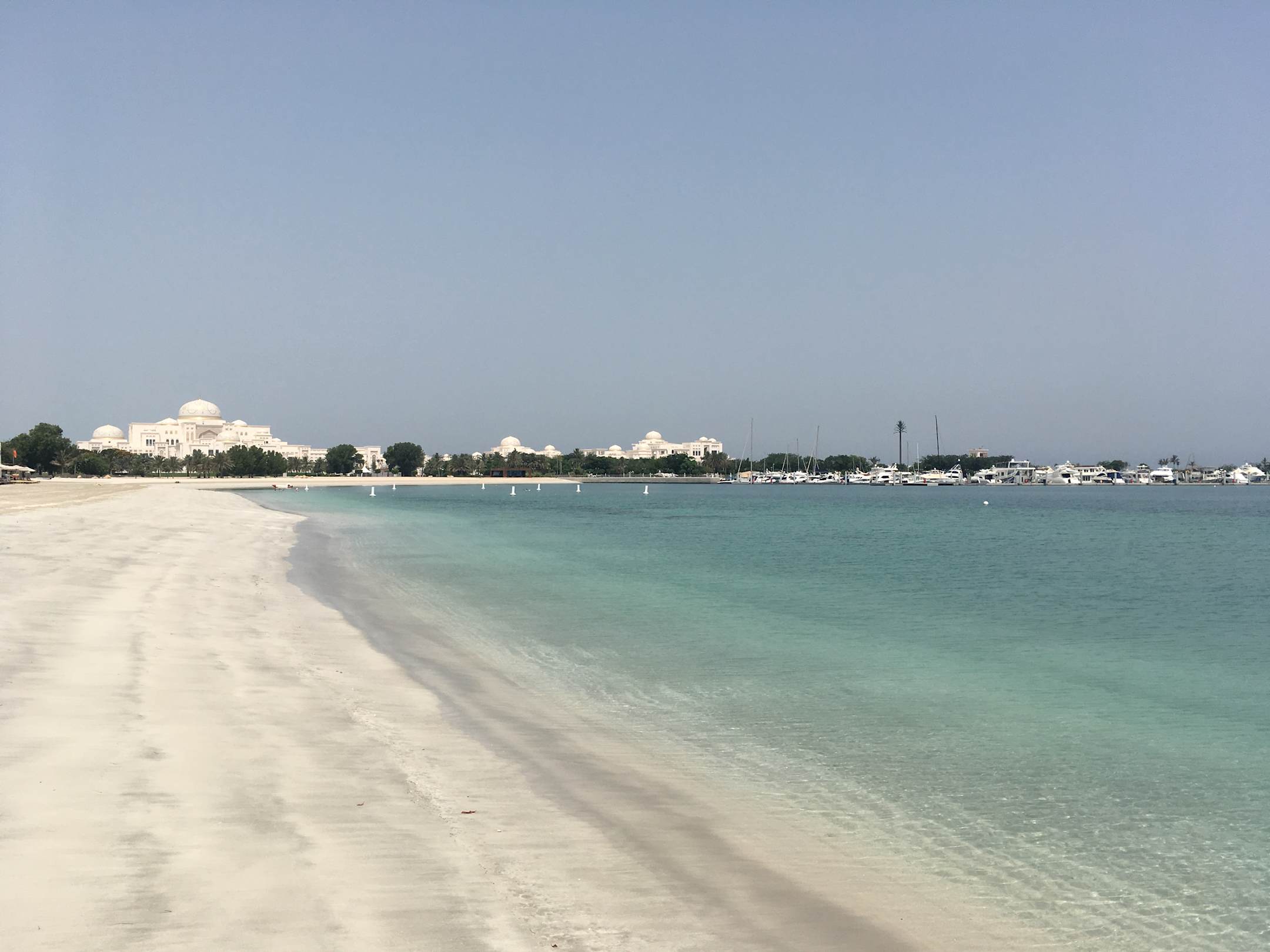Vom EastWing Beachbereich blick über die Bucht, den Palast und die Marina