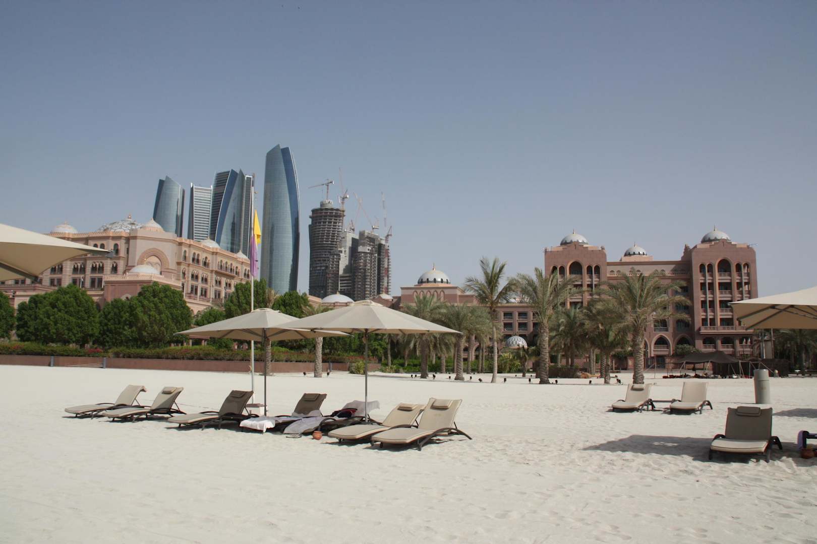 Liegen standen immer zur Verfügung, das Personal war meist sehr zuvorkommend und brachte Handtücher, Erfrischungstücher und Obst. Die Hotels links vom Emirates waren 2007 noch nicht da.