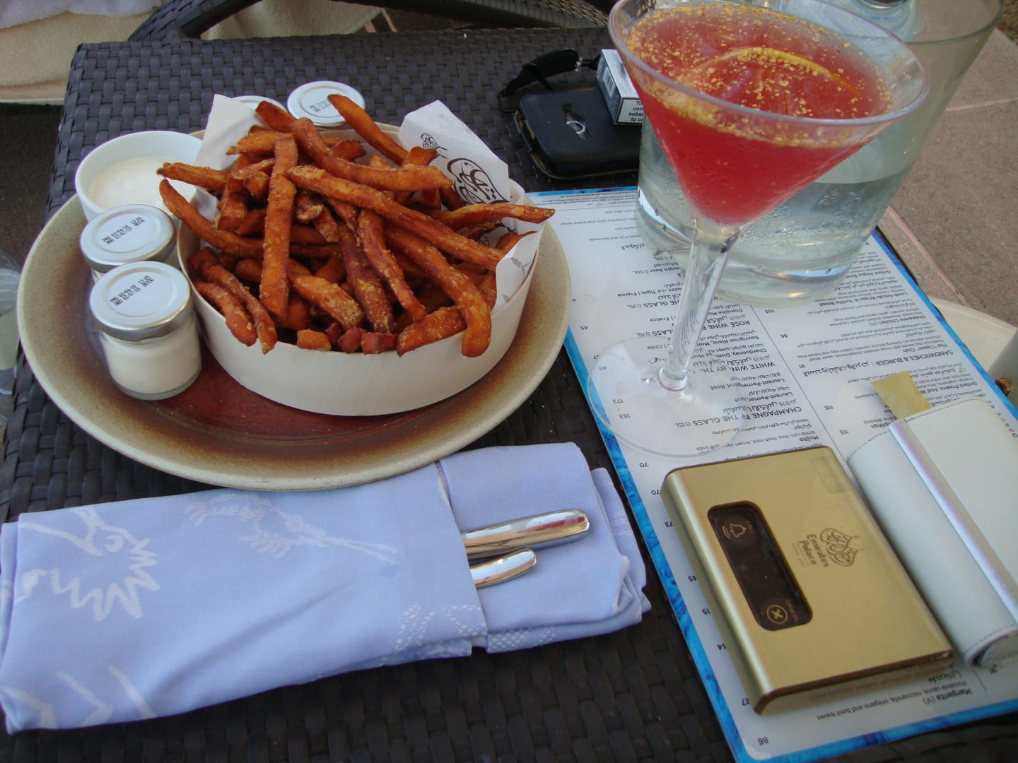 Süßkartoffelpommes für ca 12 Euro. Ist das günstigste was man sich an die Liege bestellen kann.