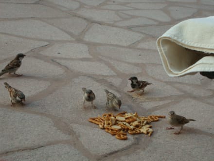 Gierige Vögel im Emirates Palace. Die haben sogar unsere Snacktüte geklaut :-)