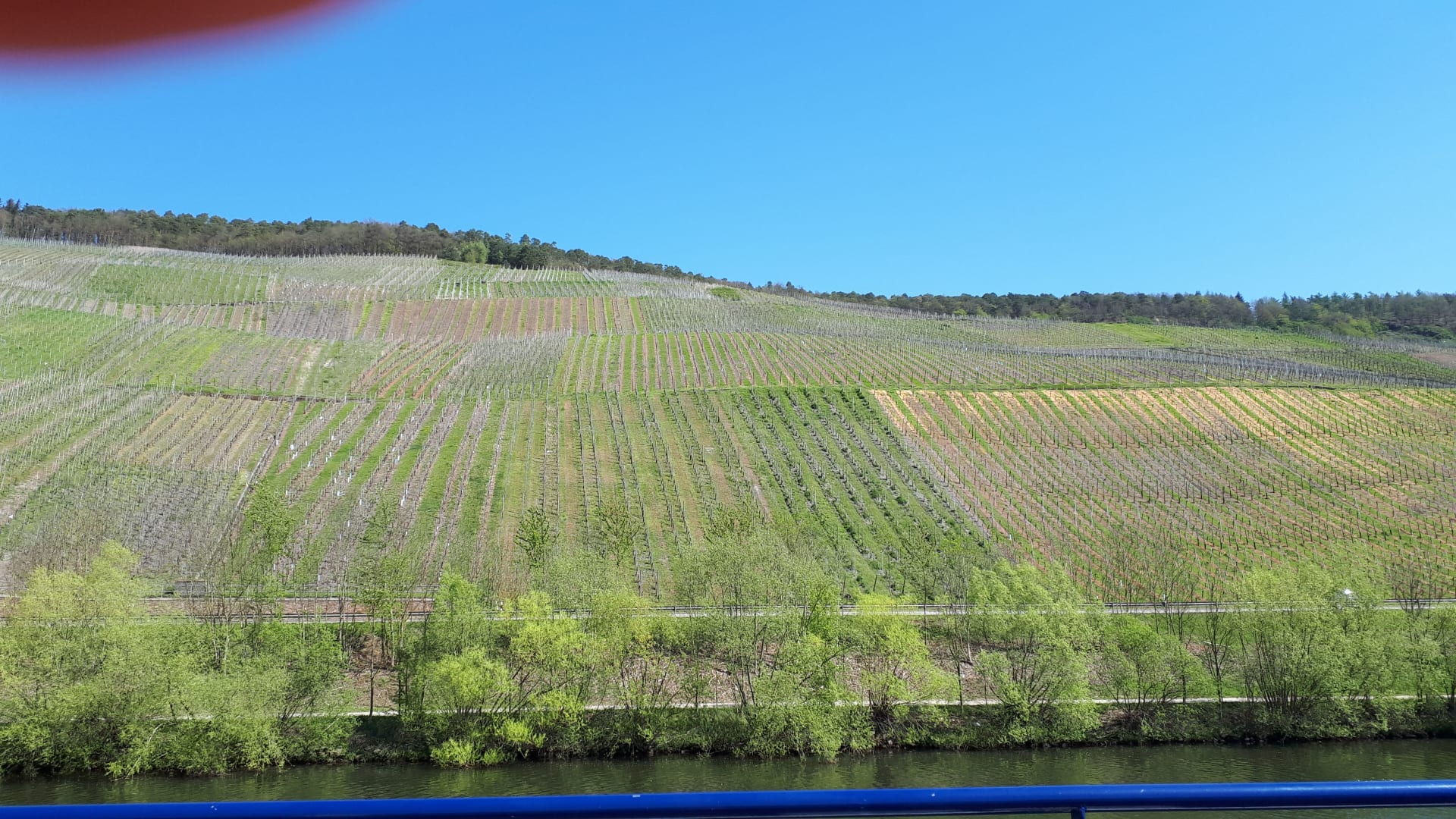 Ausblick bei der Schifffahrt auf die Weinberge der Mosel