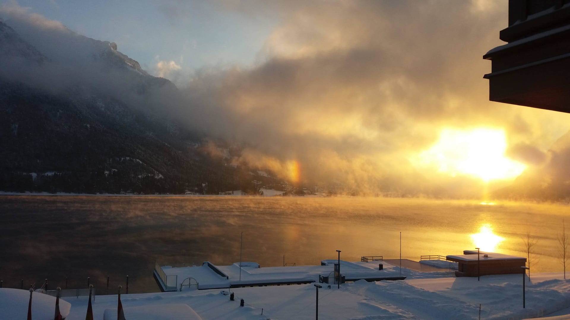 Morgens um 08:00 Uhr mit Regenbogen