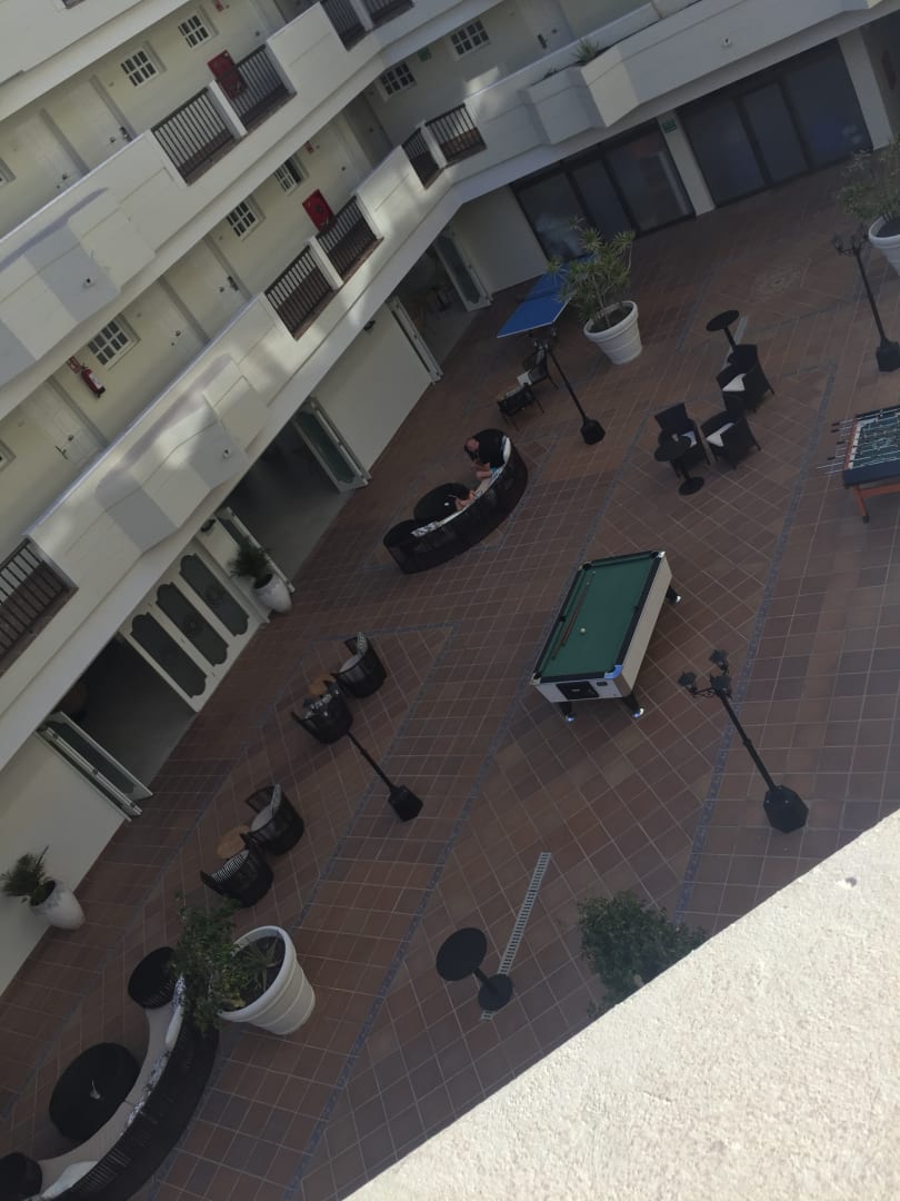 Innenhof, wo das Abendprogramm stattfindet Kicker und Billard kosten 1€