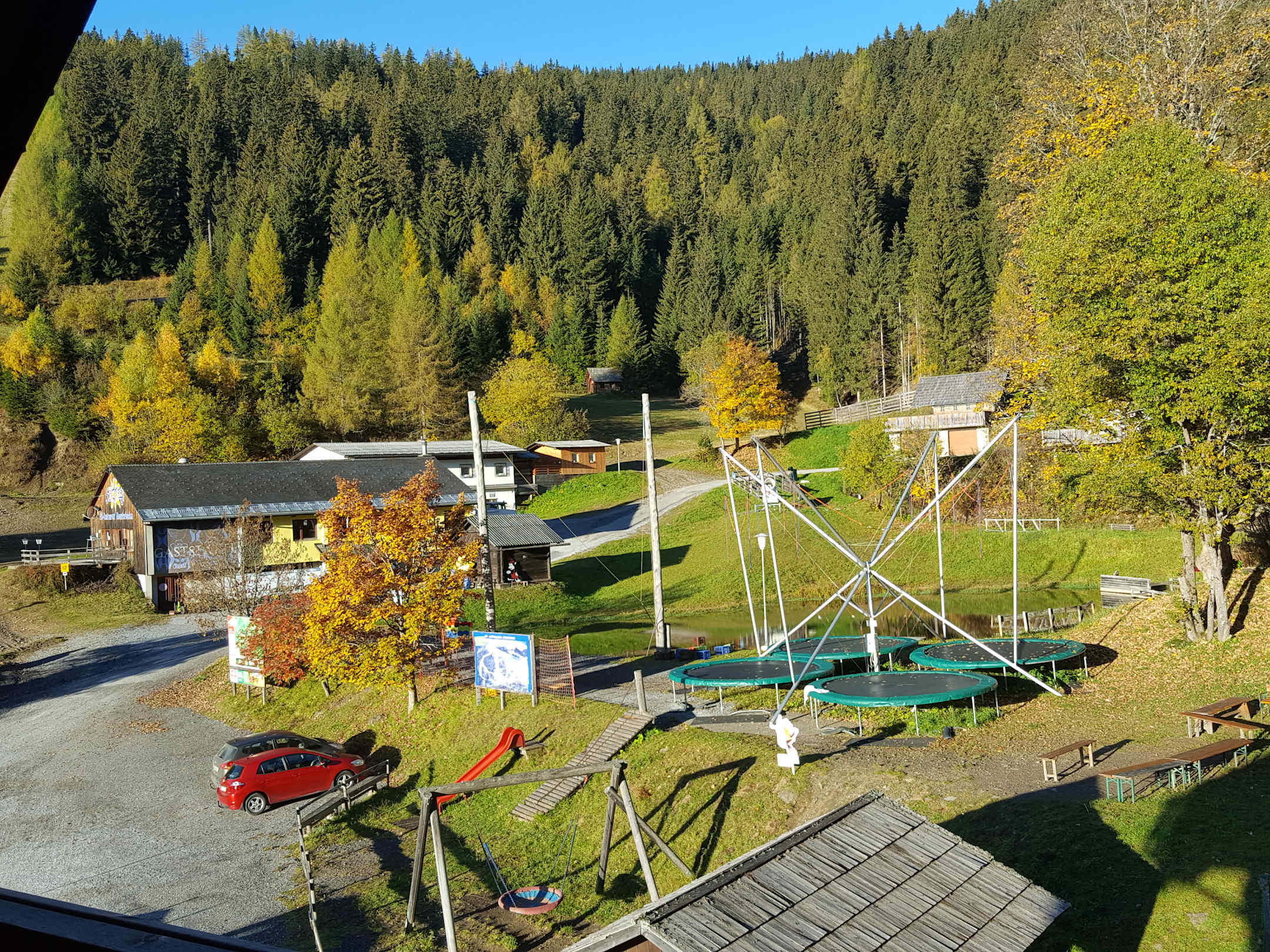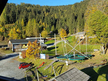 Blick vom Balkon auf Sport- und Freizeitmöglichkeiten