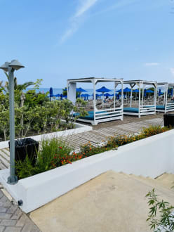 StrandDaybeds am Strand und jede Menge Liegen