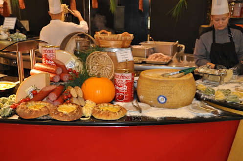 Der große Parmesan im Vordergrund