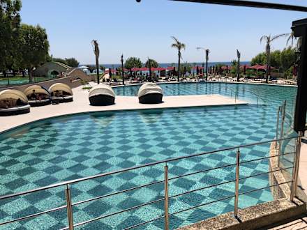 PoolLeider sind die meisten Palmen am Pool vertrocknet. Im Pool liegt viel Sand aus dem Meer, da einige ihre Füße nicht abspülen.