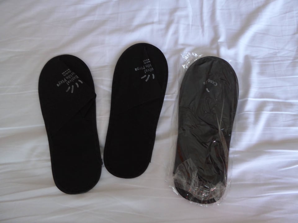 Stark nach Plastik stinkende Slipper