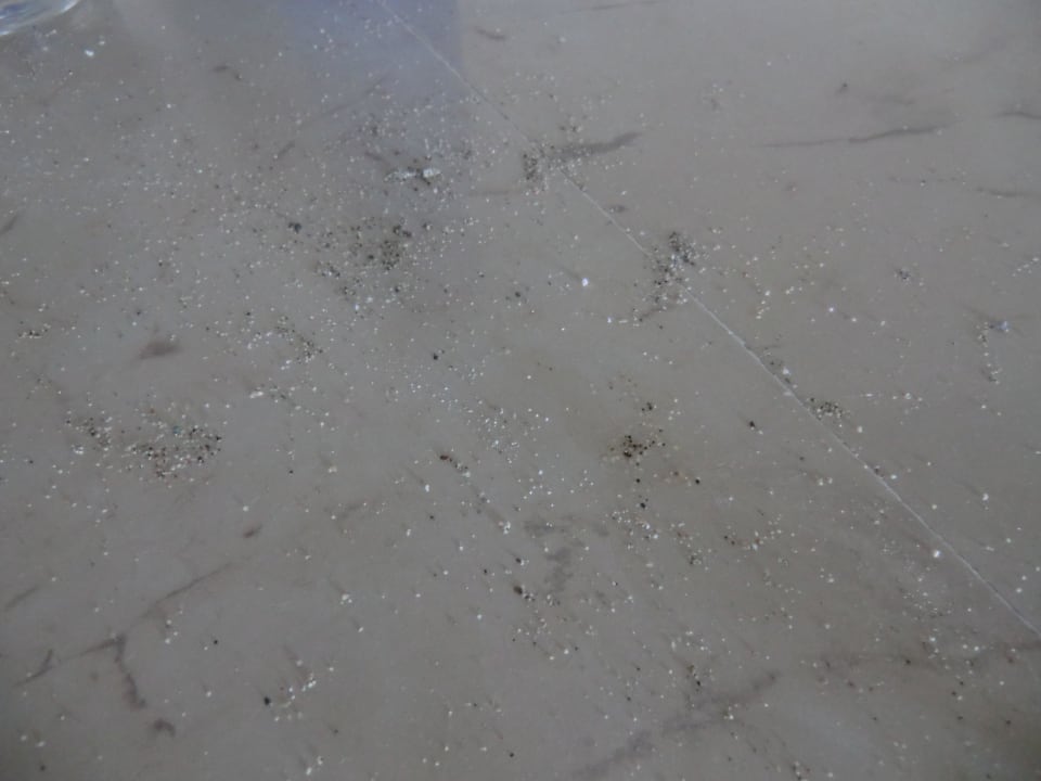 Arbeitsplatte Wohnkücheganze 8 Tage lagen diese Krümel vom Vorgänger dort. Dann haben wir uns entschlossen diese selber weg zu machen.