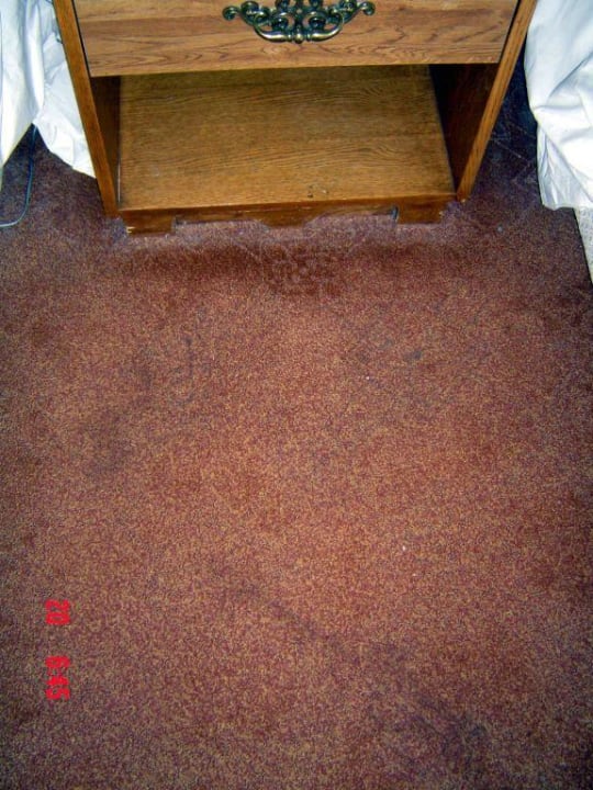 Große Flecken auf den Teppich neben den Nachttisch