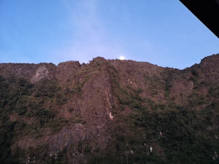 AusblickDa wir ja spät abends angekommen waren -waren wir sehr neugierig wie das ganze so aussah.UND das war unser Ausblick-Sonnenaufgang.Berge mit Bäumen und Sträuchern bis zum Gipfel.Mit unserer Fensterfront war das vom Bett schon herrlich zum anschauen.