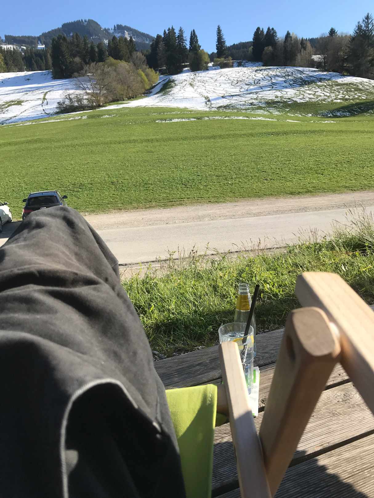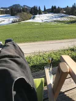 Terrasse mit Liegestühlen und Ausblick