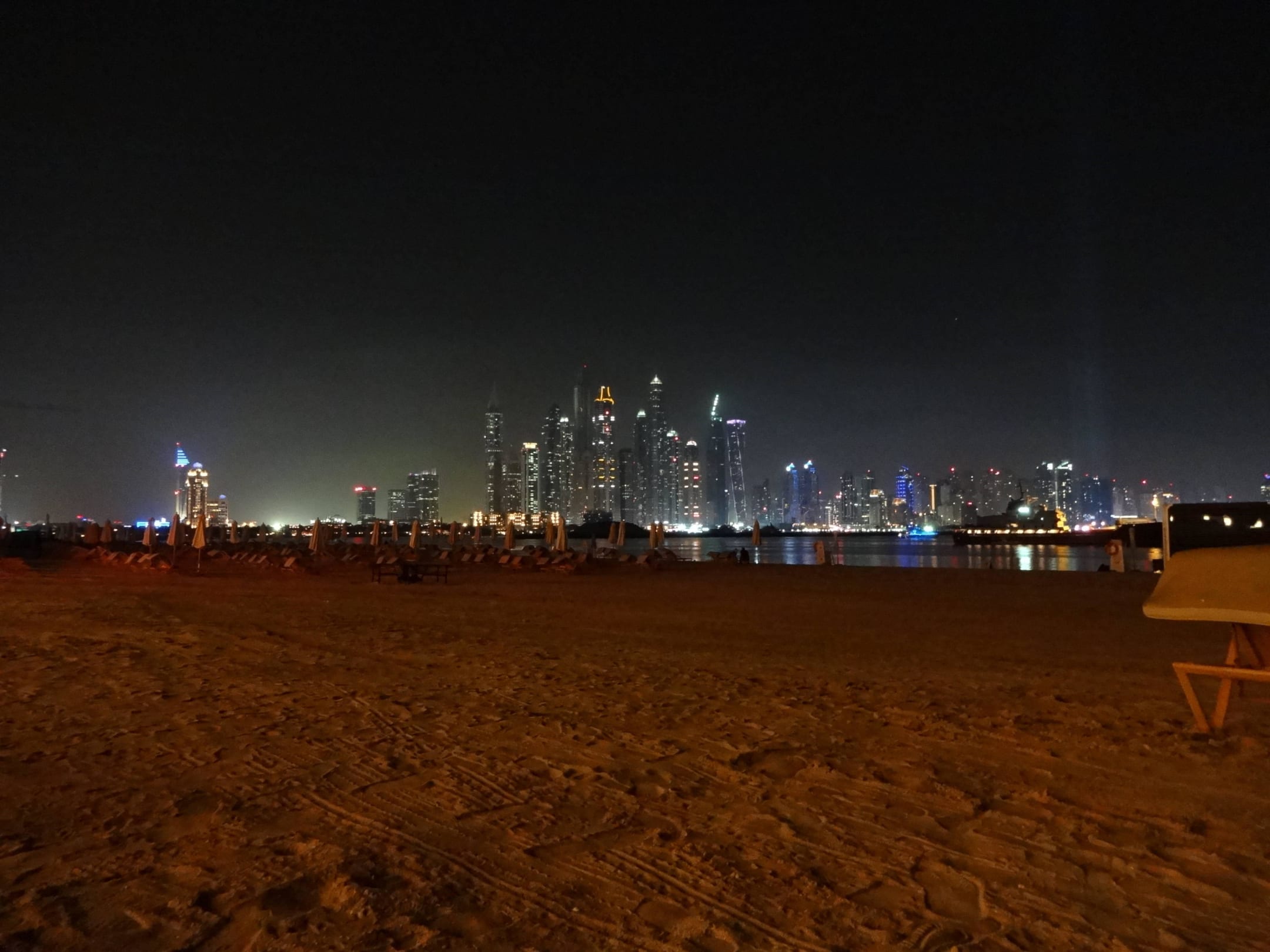 Strand bei Nacht mit Dubai Marina