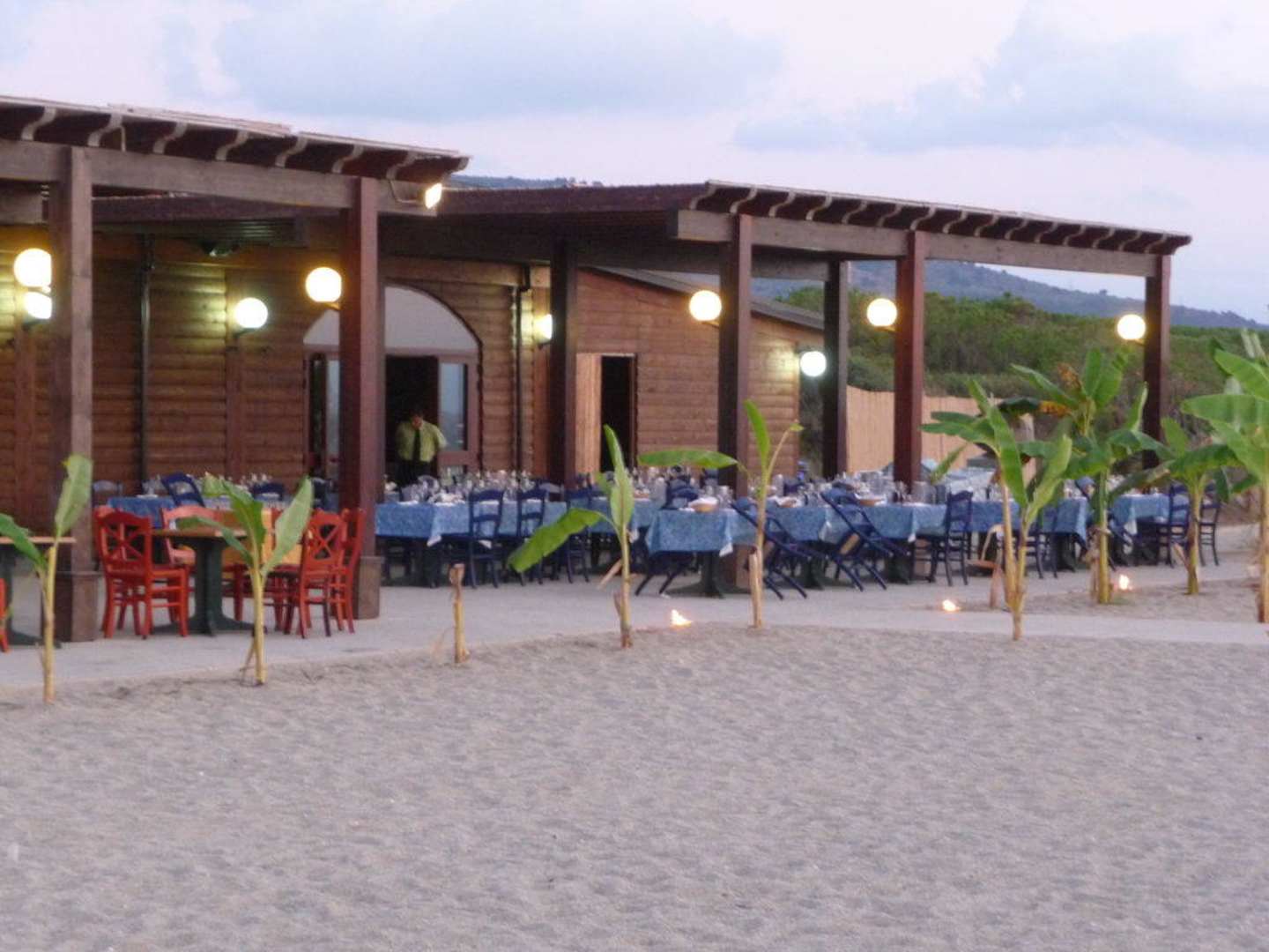 Blick auf das Fischrestaurant am Strand