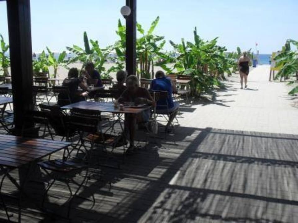 Angenehm halbschattig vor dem Strandrestaurant