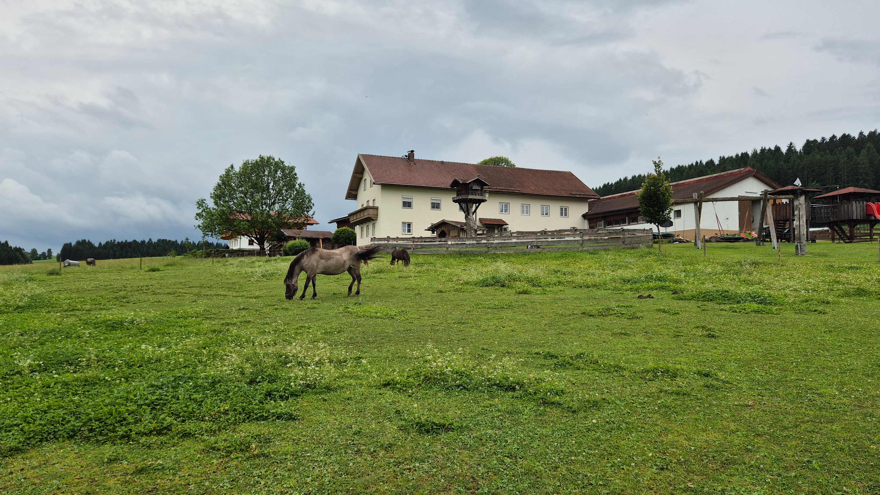 Pferdeweide mit Streichelzoo, Spielplatz, Haupthaus & Stall