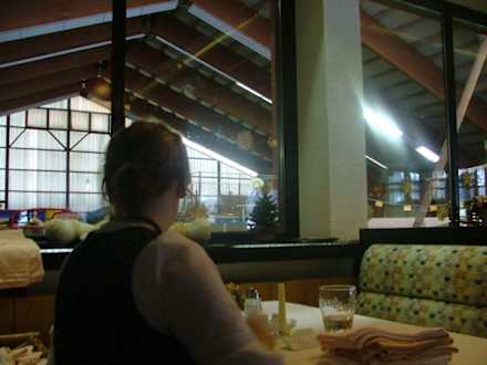 Hier kann man nochmal schön erkennen, wo die Erwachsenen sitzen und essen, während die Kinder in der rieseigen Halle toben können.