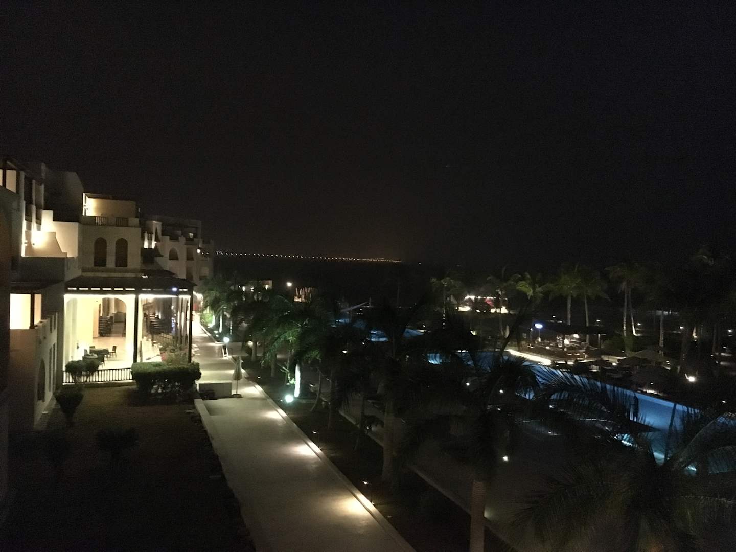 Ausblick abends auf Hotelanlage und Poolbar.