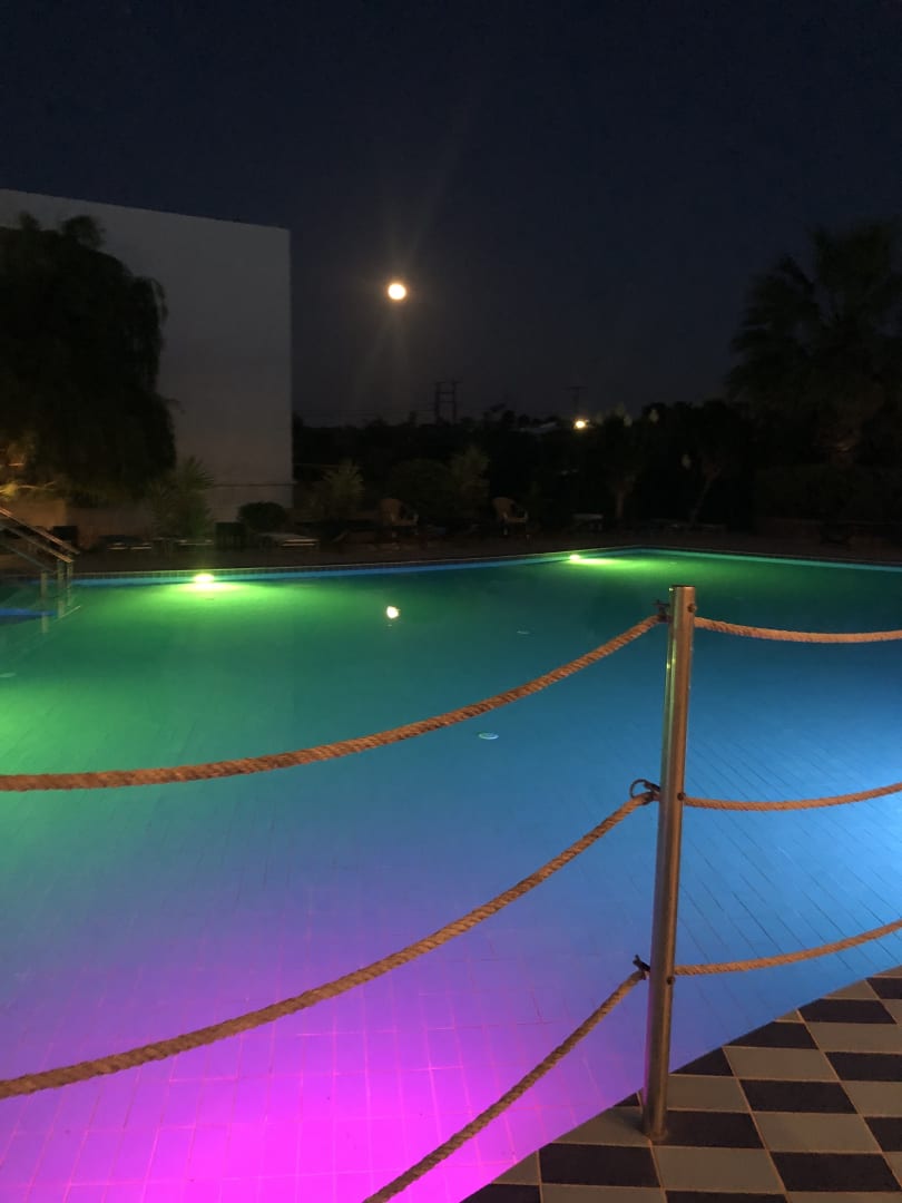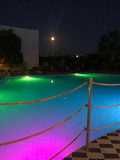 Pool am Abend von der Poolbar gesehen