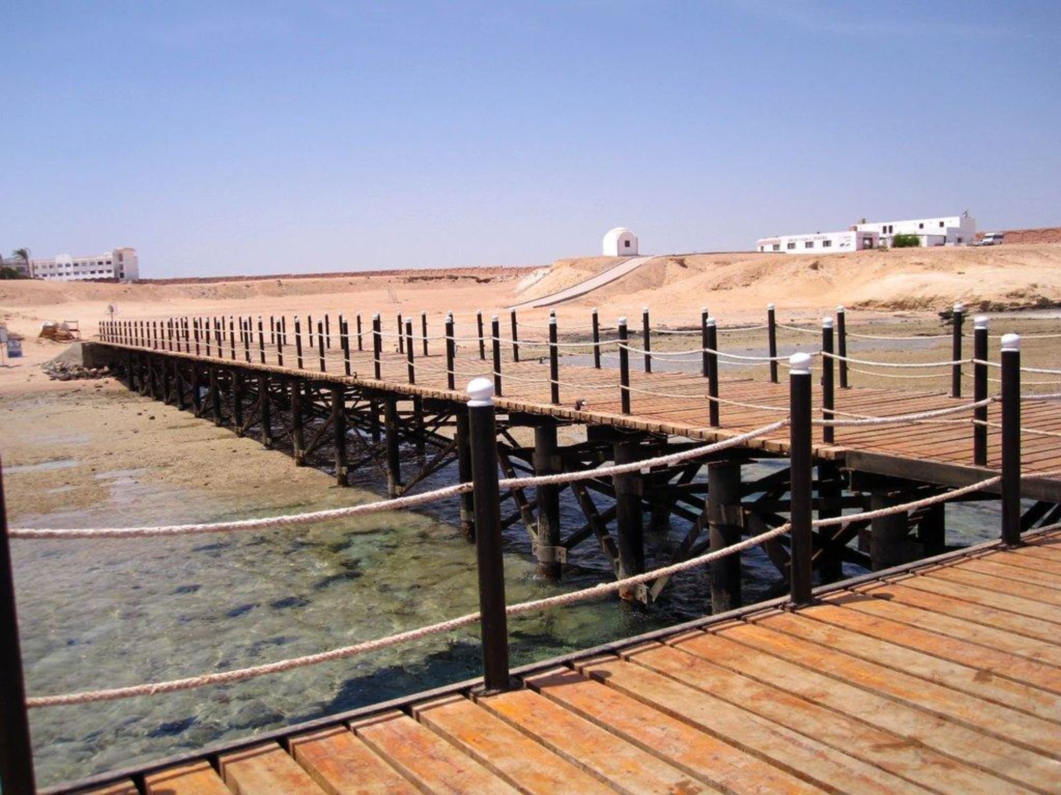Blick über den Steg zur Landseite hin. Rechts oben das Tauchcentre.