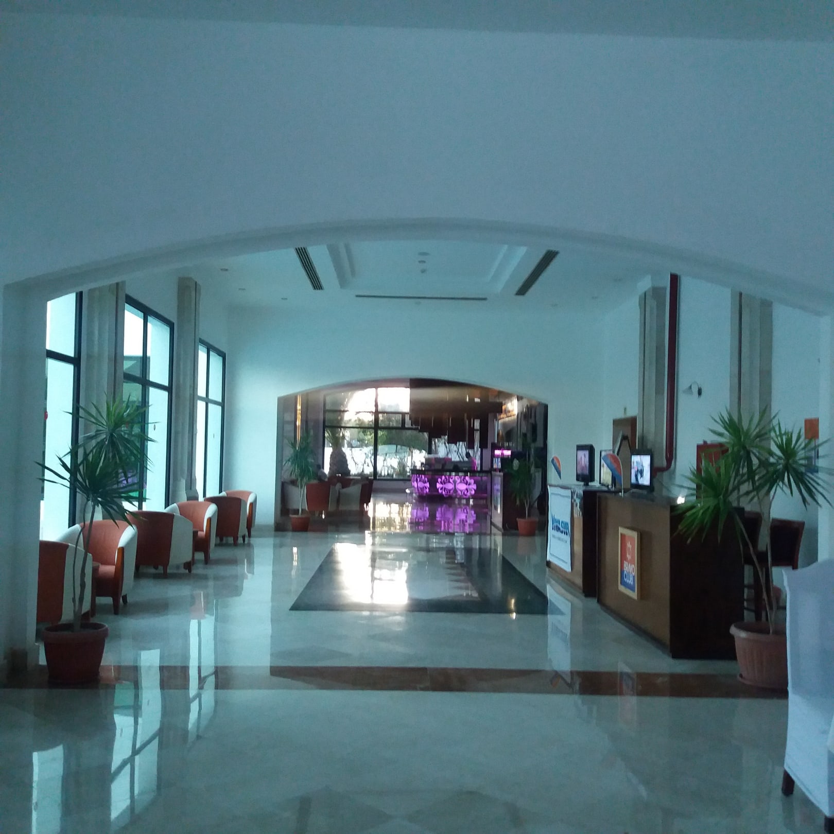 Eingang vom Aussenrestaurant mit Blick auf die Lobbybar