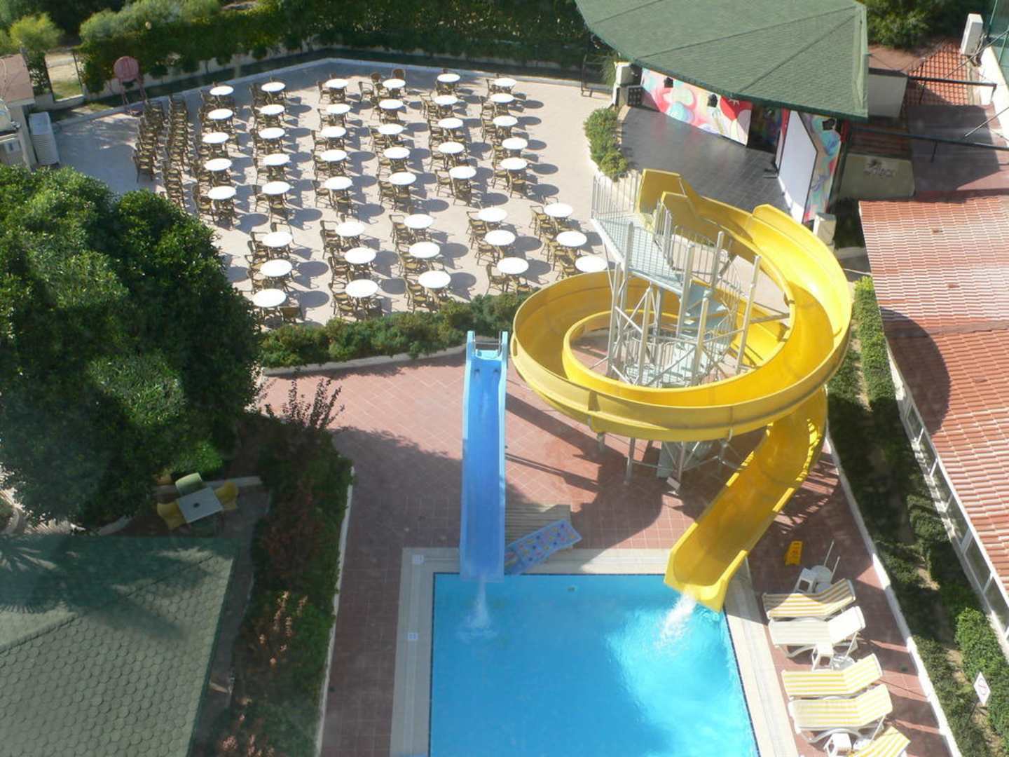 Die beiden Wasserrutschen von unserem Zimmerfenster aus gesehen