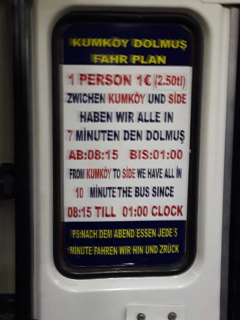 Kumköy Dolmus Fahrplan 1,- EUR / Person / Fahrt