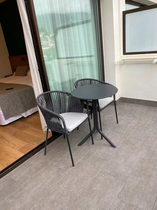 Balkon mit Blick auf Pool und Straße