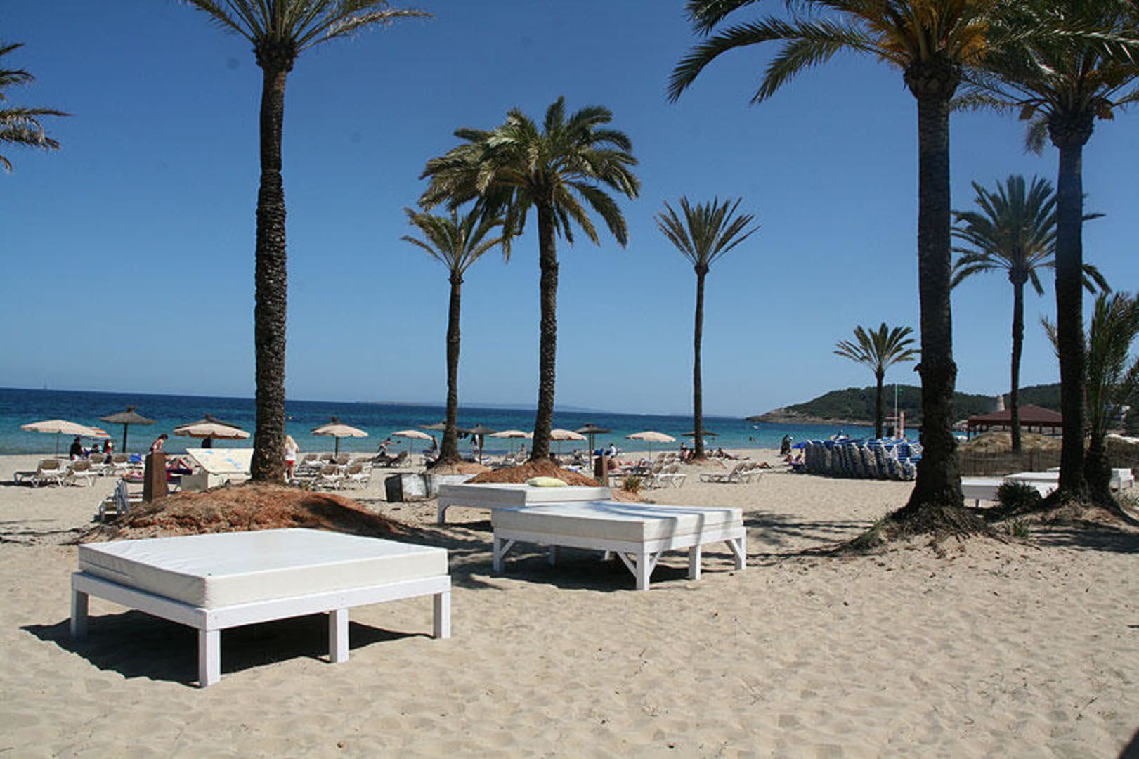 Ibiza Typische Liegen direkt vor dem Strandrestaur
