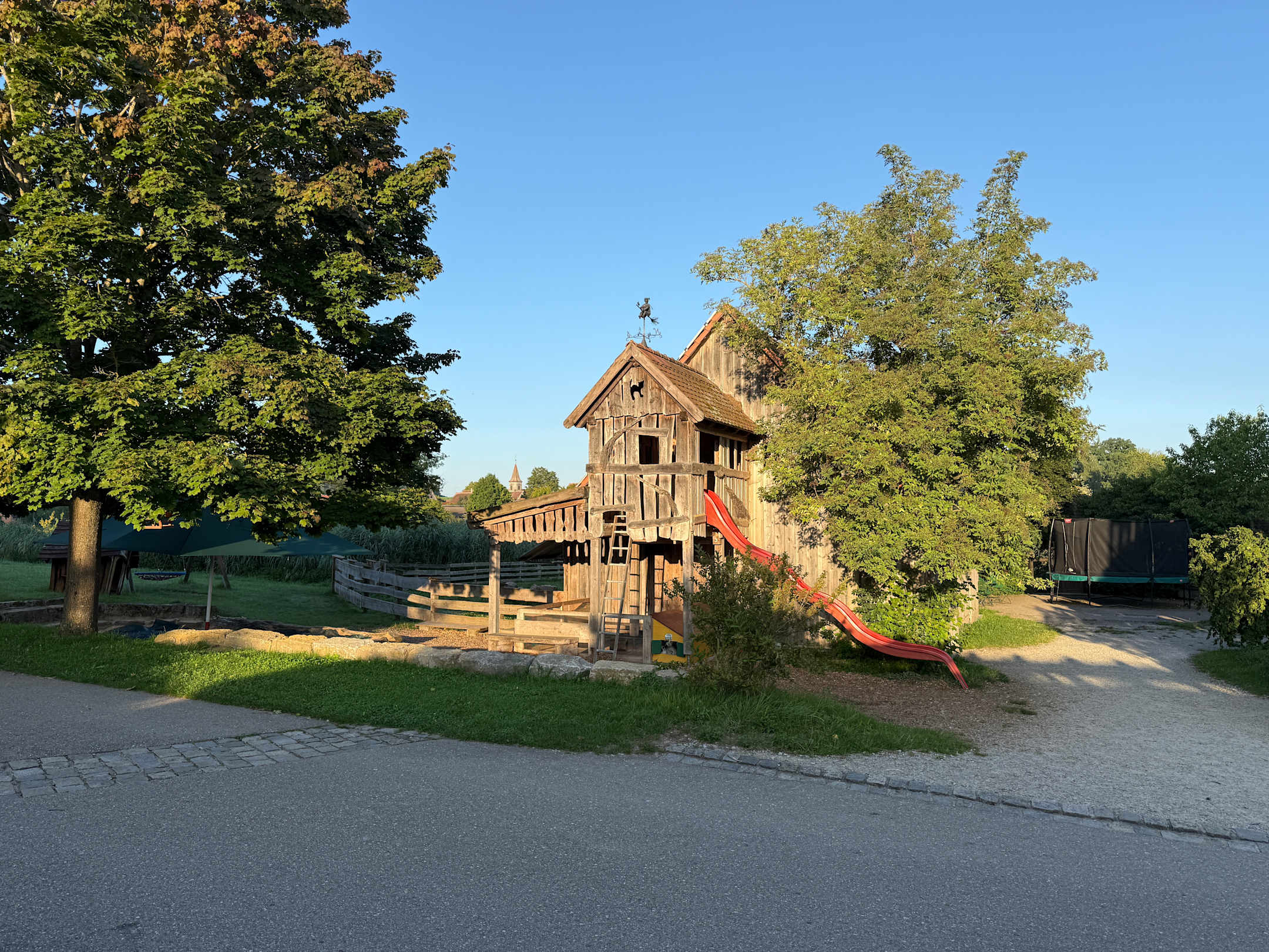 Hasenstall, Heuboden, Trampolin und Fahrzeug-Garage
