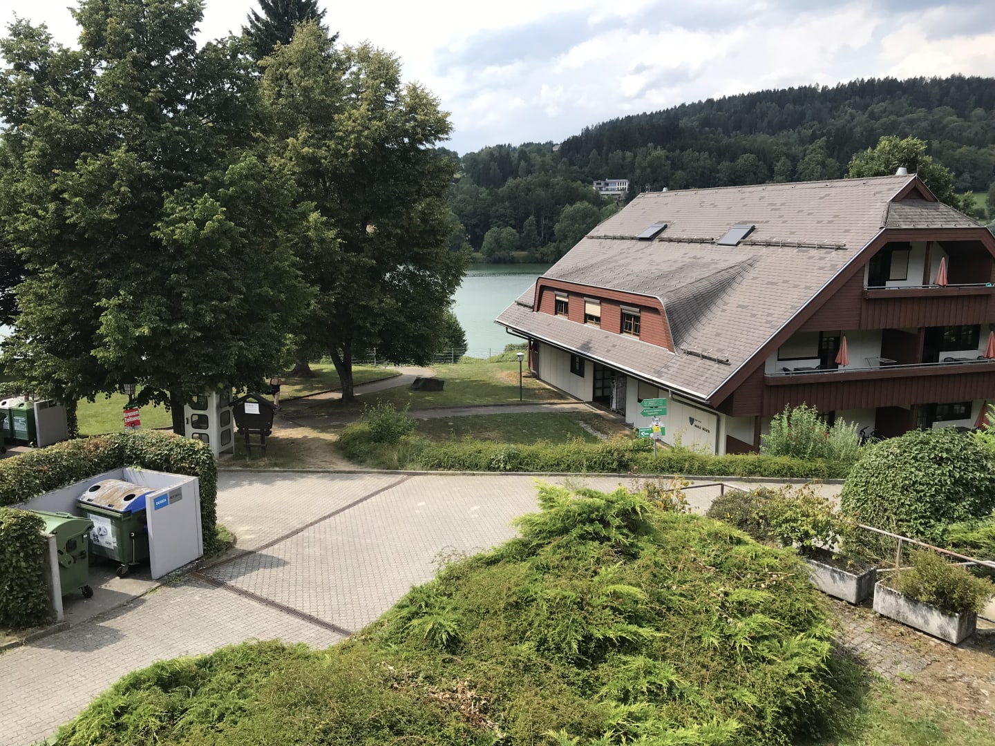 Ausblick von unserem Balkon ca. 70 m zum See