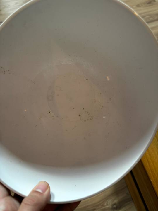 Eine dreckige Hundeschüssel neben anderem Geschirr